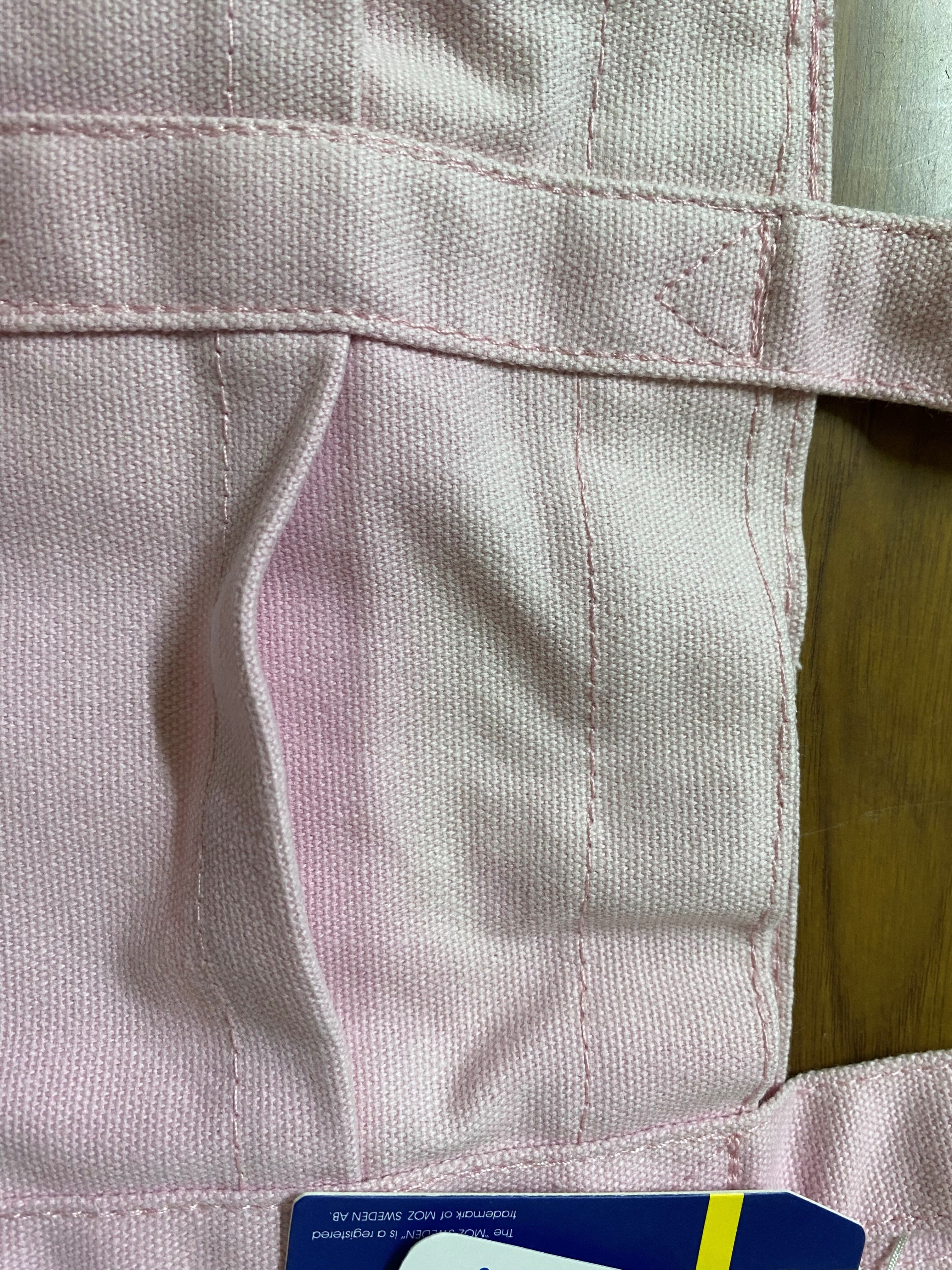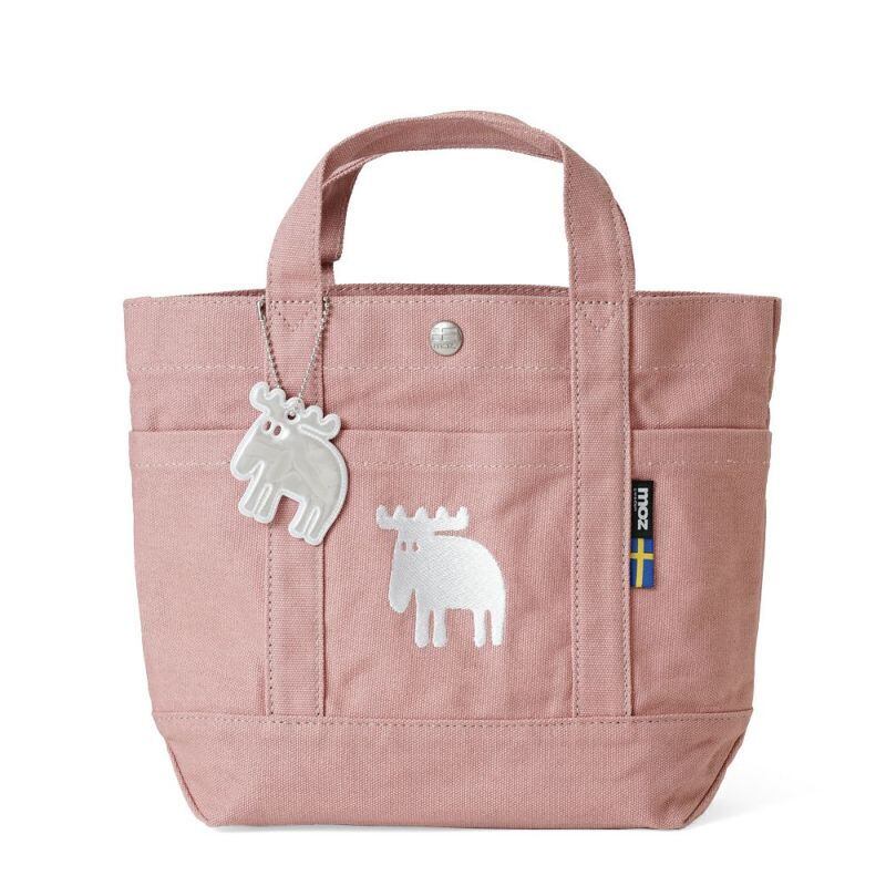 【SALE 色焼け】キャンバス生地 に エルク が 刺繍された北欧ブランド moz の ミニ トートバッグ。付属品(チャームほか)は付いていません。アイテム の 定位置管理を可能にする ポケット を 9つ 装備。