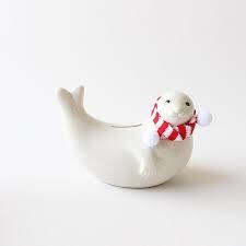 10年ほど前に国内外の著名なデザイナーによるイラストをプリントしたシリーズが大ヒットしたアザラシ貯金箱。モチーフになっているのは、サイマーンノルッパ(サイマーワモンアザラシ)。フィンランドのサイマー湖にしか生 息しておらず、現在の固体数が350から400ほどの世界一希少な淡水アザラシだそうです。WWFの絶滅危惧種に指定され、その保 護のために尽力されています。14cm×8.5cm×10.9cm