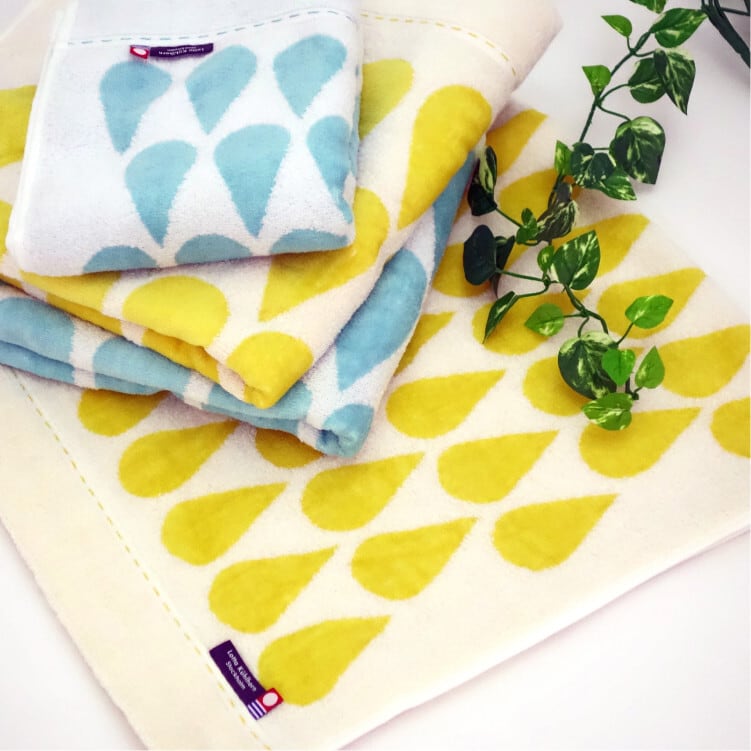 水滴のモチーフを感性豊かにデザイン、それをもとにスチームシャーリング仕様で豊かな風合いのタオルになってます。