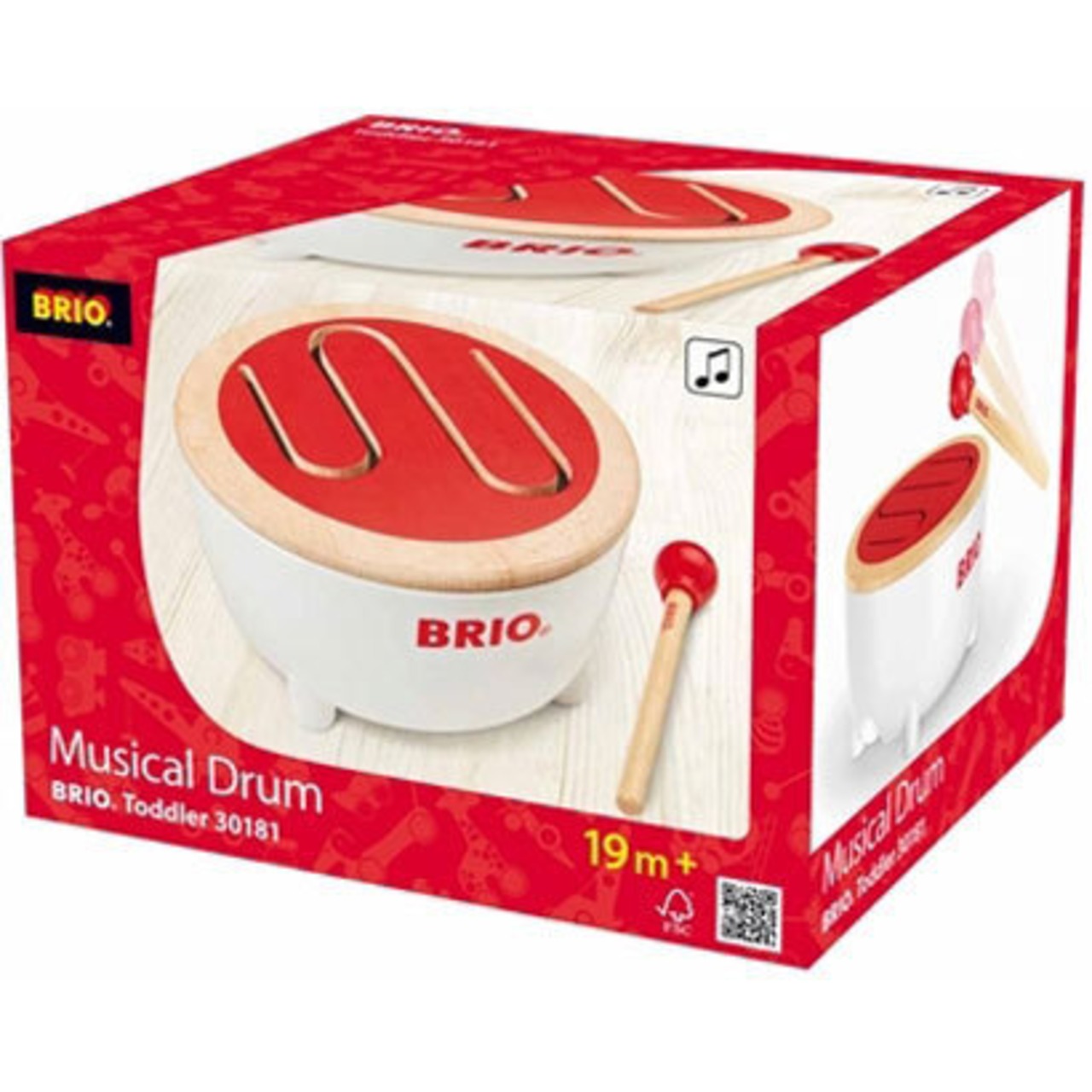 スウェーデン王室御用達のBRIO。シンプルで洗練されたデザインが特徴。それが子供たちの遊びの世界を広げ、豊かな創造性を育ててきました。これこそがBRIOの全商品に込められた、「遊びの哲学」です。ドラムスティックは本体に収納できます。18か月~ 紙箱入り