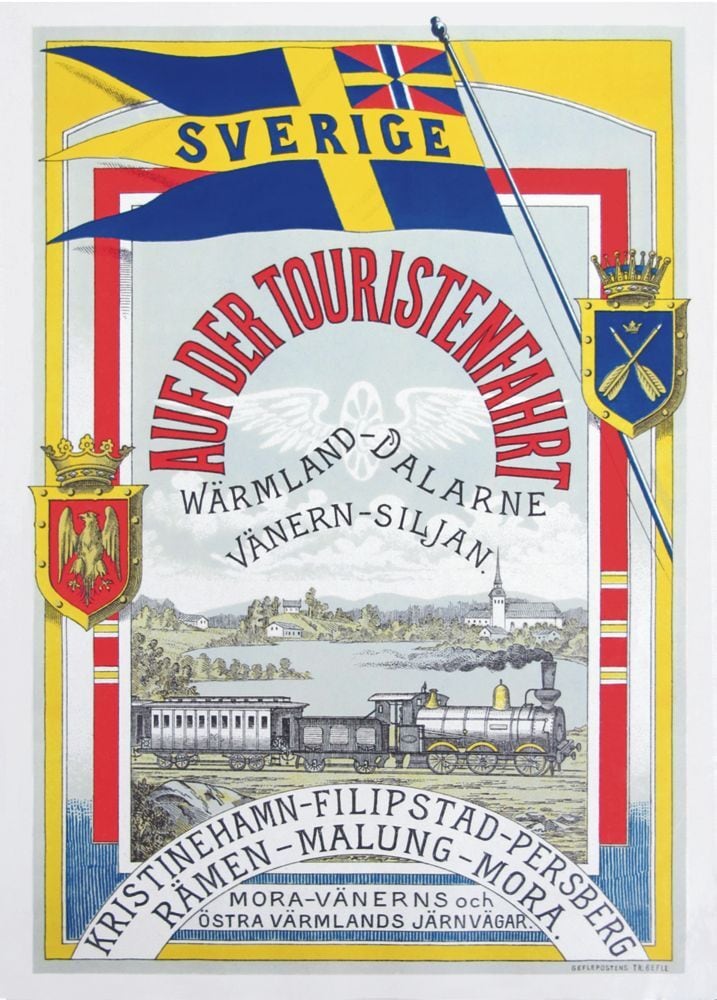 【SALE(額の表面、背面、枠に傷あり)】1950-1980年ごろに誕生した、ポスターデザイン。当時の鉄道会社、船会社、航空会社などが、スウェーデンの魅力をアピールし、世界中から観光客を呼び寄せるために制作したポスターです。無名のアーティストから有名アーティストまで、さまざまなアーティストがデザインを行いました。北欧レトロ感にあふれ、またスウェーデンの魅力が伝わる魅力的なデザインコレクションです。ポスター自体は当店へ細い丸筒で納品されるため折皺がついている場合がございます。500x700㎜
