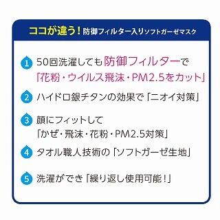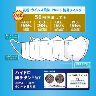 ★50回洗濯しても防御フィルターで『花粉・ウイルス飛沫・PM2.5をカット』