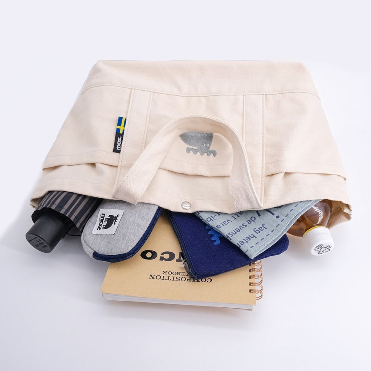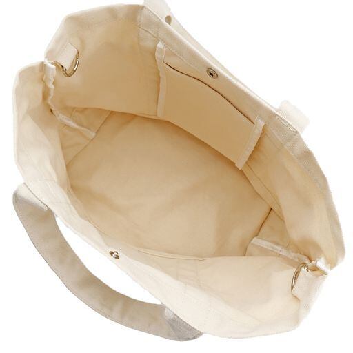 お出かけにちょうど良い、帆布トートMとLサイズの間位の大きさです。取り外しできるショルダー紐付き。通勤・通学やお出かけに最適な、使いやすさを重視した仕様。